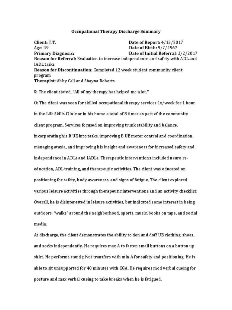 Occupational Therapy Discharge Summary Example Form Fill Out And Sign Printable Pdf Template Signnow