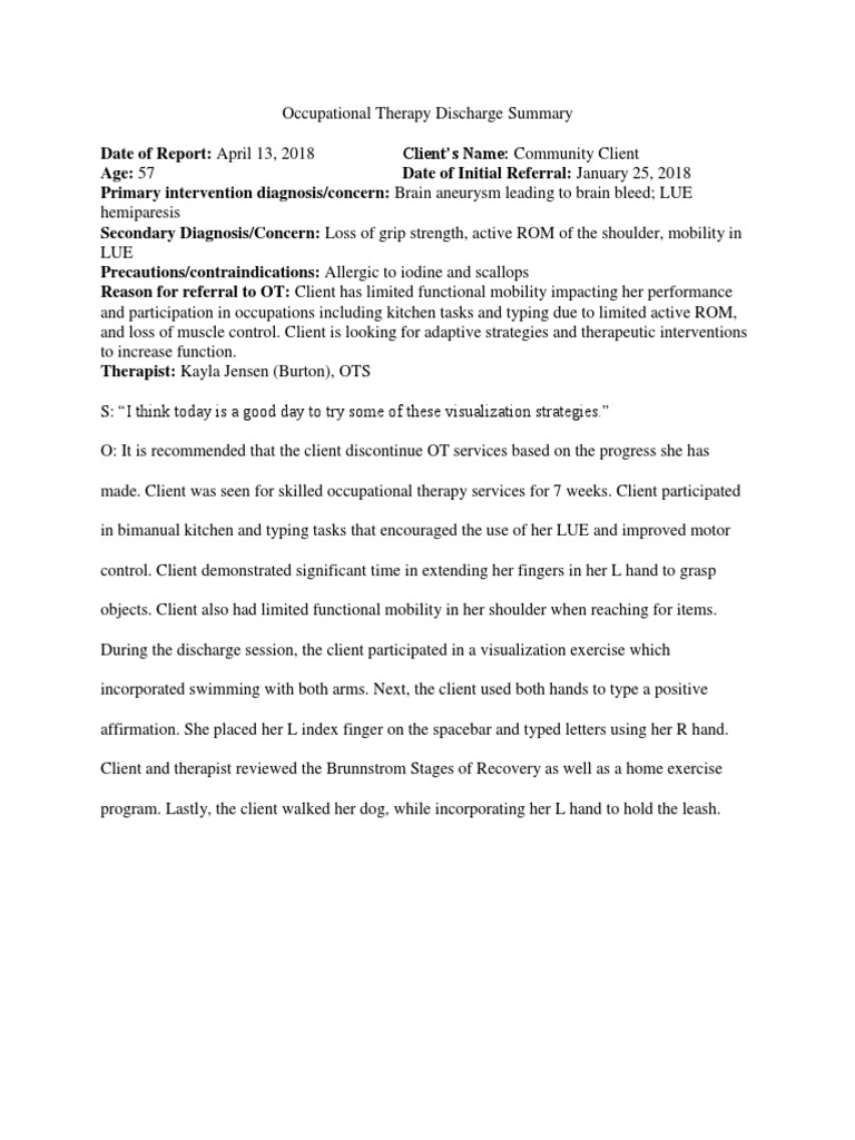 Discharge Note Pdf Occupational Therapy Applied Psychology
